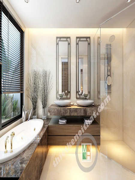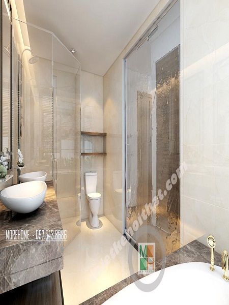 Bạn cần chú ý đến màu nội thất phòng tắm cùng với vách tắm kính.