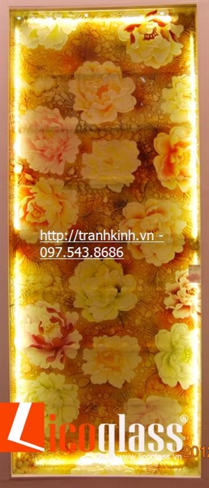 Vách kính hoa mẫu đơn trong phòng ngủ cho đời sống vợ chồng thêm hạnh phúc.